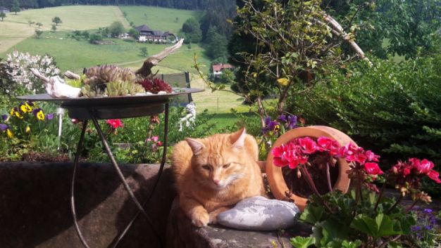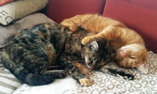 Unsere "kleinen Tiger" Mama Jule (grau) und Sohnemann Merlin (rotbraun). Beide haben wir aus dem Tierheim geholt und sie fangen ganz fleißig Mäuse. Leider sieht man sie nur selten im Hof.