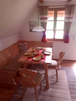 Die Essecke... und wenn man aus dem Fenster schaut...kann man oft grasenden Alpakas zuschauen