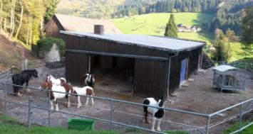 Wir bieten einen großen Offenstall. Der Offenstall hat insgesamt 160qm mit zusätzlichen befestigten Paddock von ca. 100qm. Angrenzend befindet sich die Weide, mit bis zu 5 ha. Die Pferde werden in einer Gruppe mit bis zu 10 Pferden im Offenstall zusammen gehalten. Außerdem haben wir noch 3 Offenställe für 2 -3 Pferde.